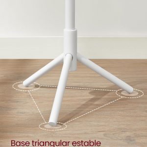 La estabilidad es el primero requisito para un perchero de pie. La base triangular de 47 cm de ancho proporciona un cimiento sólido para este perchero, que puede soportar de hasta 15 kg.