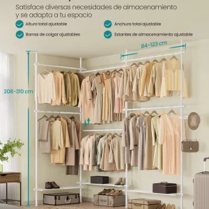 Perchero de Ropa de 3 Niveles Blanco Mate