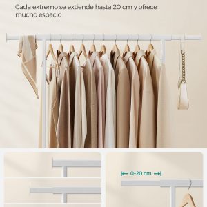 Barras Retráctiles Versátiles: Cuenta con barras laterales extensibles hasta 20 cm (longitud total de 92-132 cm), proporcionando espacio adicional para colgar ropa y organizar accesorios como bolsos, sombreros y bufandas.