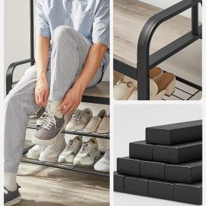 Diseño Robusto y Estable: Construido con una estructura de acero sólido y tableros de aglomerado de alta calidad, este perchero zapatero soporta hasta 90 kg en el banco, permitiéndote sentarte con seguridad mientras te preparas para salir.