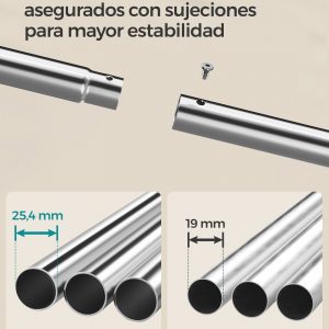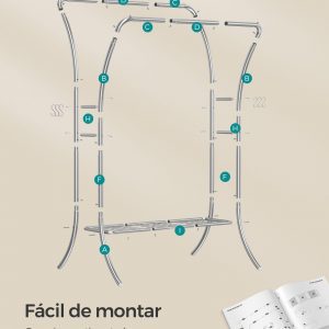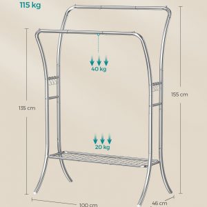 Construcción Robusta: Fabricado con tubos de acero de alta calidad, este perchero proporciona un soporte fiable y estable para una carga total de hasta 115 kg.