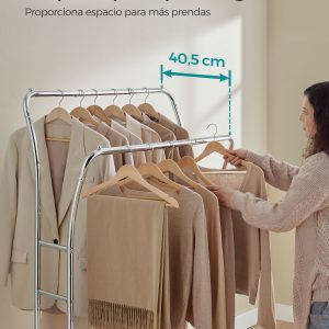 Amplio Espacio de Almacenamiento: Su diseño de doble barra ofrece una capacidad generosa para colgar ropa, aumentando significativamente el espacio de almacenamiento disponible en tu hogar.