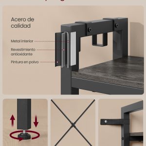 Estantería con 5 Niveles: 5 estantes para colocar cestas, bolsos, adornos u otros objetos de uso frecuente. El estante superior tiene barras elevadas en el lateral para evitar caídas.