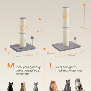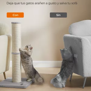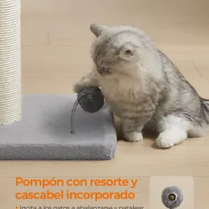 Sisal Resistente: Envuelto en sisal duradero, este poste rascador es perfecto para satisfacer el deseo natural de tu gato de arañar, protegiendo tus muebles de posibles daños. Es una opción resistente y duradera que mantendrá a tu gato entretenido por mucho tiempo.