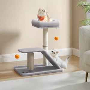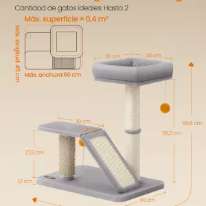 Acceso Fácil para Gatos Pequeños y Mayores: La rampa de rascado y la plataforma superior facilitan el acceso a la cama incluso para gatos pequeños o mayores con movilidad reducida, permitiéndoles disfrutar de las vistas desde la percha.