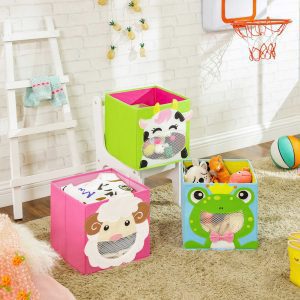 Introduce a tus hijos en el mundo del orden y la organización de manera divertida y educativa con nuestro set de 3 cajas de almacenamiento. Diseñadas para fomentar el juego y la responsabilidad, estas cajas convertirán la tarea de ordenar en una aventura, animando a tus pequeños a «alimentar» a sus nuevos amigos animales: la ranita, la vaca y la oveja, con juguetes y libros. Este innovador enfoque no solo embellece el espacio sino que también inculca hábitos de organización desde temprana edad.