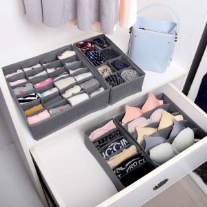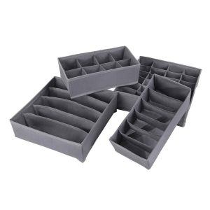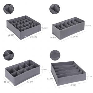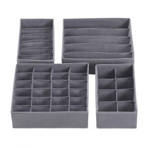 Set 4 organizadores cajones plegables, ropa interior, gris