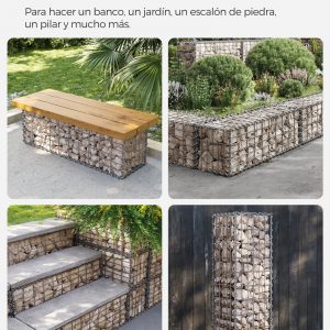 Diseño Personalizable y Multifuncional: Úsalas como desees; nuestras cestas de gaviones pueden funcionar individualmente o en conjunto para crear estructuras únicas como jardineras, bancos, escalones de piedra o pilares, brindando infinitas posibilidades para tu jardín.