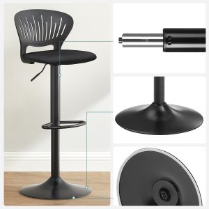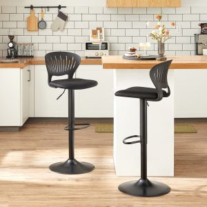 Diseño Moderno y Elegante: Con un respaldo en forma de corona y una base redonda, estos taburetes de bar en color negro aportan un estilo contemporáneo y sofisticado a tu espacio, convirtiéndolos en el centro de atención.