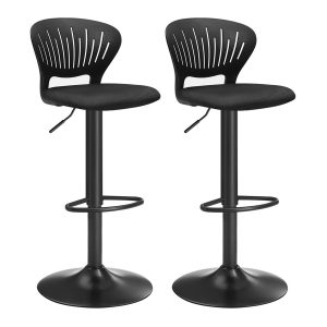 Transforma el área de tu bar o cocina con nuestro juego de 2 taburetes de bar, que combina un diseño moderno y funcionalidad superior. Todo en un sofisticado negro, estos taburetes no solo aportan un toque de elegancia sino que también prometen comodidad y adaptabilidad a cualquier mesa de bar alta.