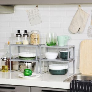 Solución de Almacenamiento Expandible: Fáciles de montar y elásticos, estos estantes te permiten duplicar o incluso triplicar tu espacio de almacenamiento, ideal para botellas, tarros y más.