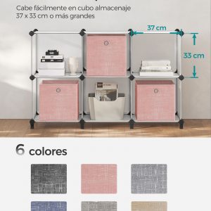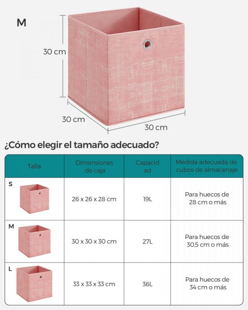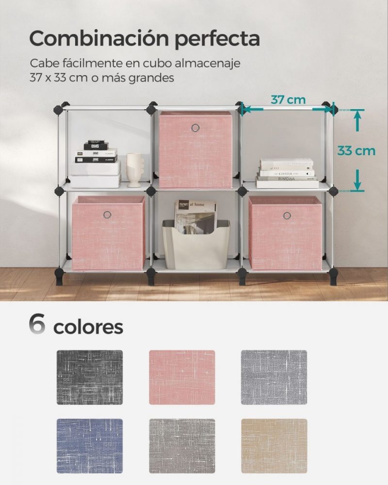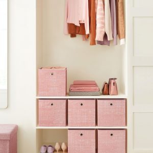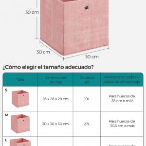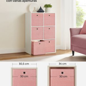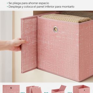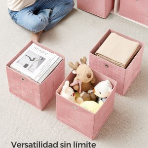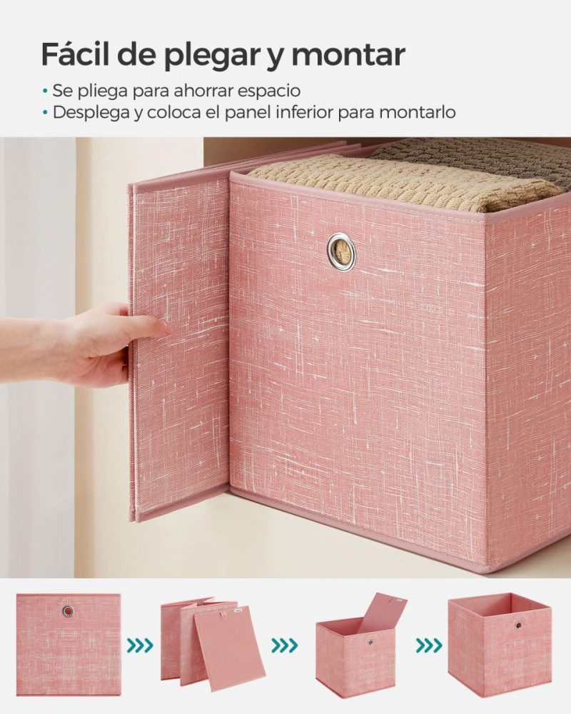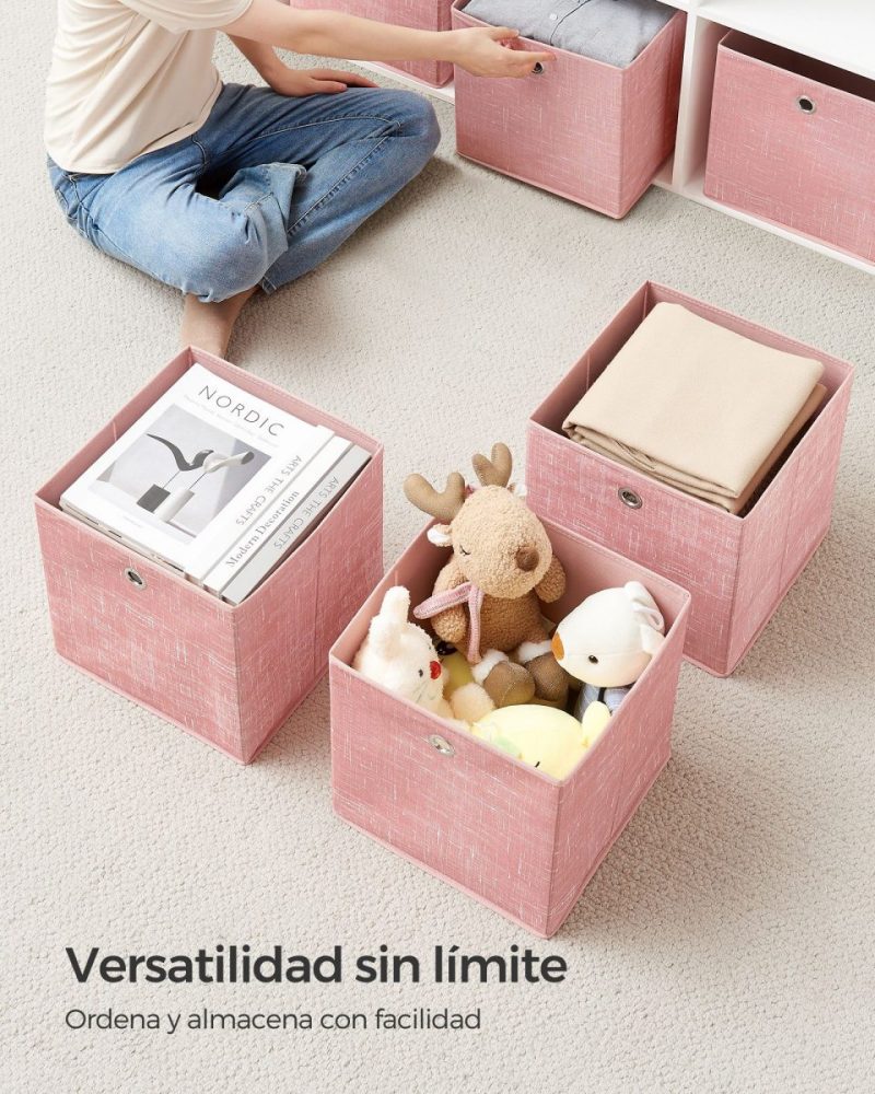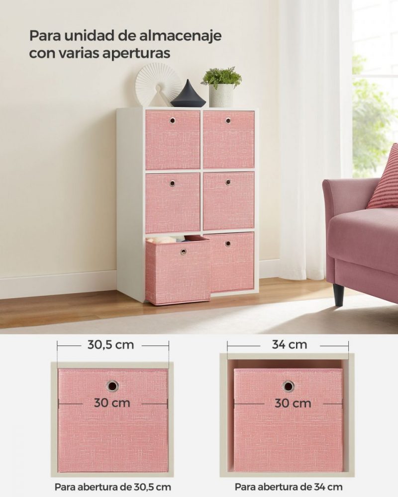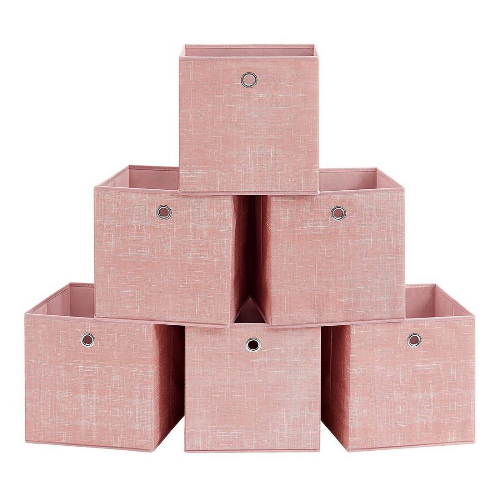 Set de 6 cajas de almacenaje plegables de tela, cubos 30x30x30 cm, rosa caramelo