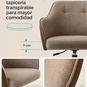 Tela Transpirable: La superficie de cada silla está hecha de tela de algodón y lino, un tejido natural que ofrece una sensación agradable al tacto y evita que te quedes pegado al asiento, incluso después de horas de uso.