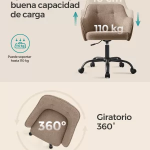 Estilo y Comodidad: El diseño curvo del respaldo y los reposabrazos no solo aporta un toque moderno a tu oficina en casa sino que también asegura una experiencia de asiento cómoda y envolvente.
