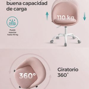 Esta silla giratoria no solo ofrece un diseño elegante y líneas geométricas sencillas, sino que también es versátil y funcional. Con la capacidad de girar 360° y ser ajustable en altura, esta silla es perfecta para trabajar, estudiar o maquillarte. Además, su diseño compacto ahorra espacio, facilitando su almacenamiento cuando no esté en uso.