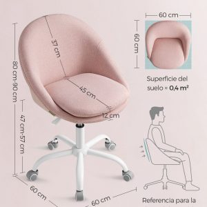 Ahorro de Espacio: Diseño compacto (60 x 60 cm) que es ajustable en altura (10 cm) y sin reposabrazos. Puedes deslizar la silla fácilmente bajo el escritorio para ahorrar espacio cuando no esté en uso.