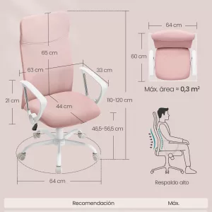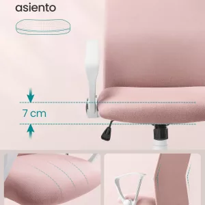 Esta silla de oficina combina la elegancia de un diseño ergonómico con la comodidad de una tela suave y acolchada. Diseñada para proporcionar alivio y apoyo adecuados, esta silla mejorará tu productividad y hará que tus jornadas laborales sean más agradables.