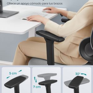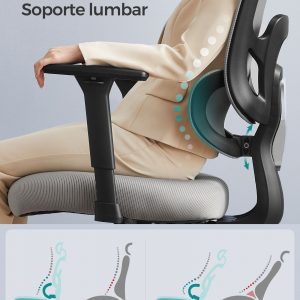 Gran Comodidad: Con un respaldo de malla transpirable y un cojín bien acolchado, esta silla es ideal para largas sesiones de trabajo, ofreciendo alivio y frescura.