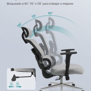 Soporte Ergonómico: Ajusta el soporte lumbar para adaptarlo a tu espalda y bloquea el respaldo en 90°, 115° o 135° según tu preferencia.