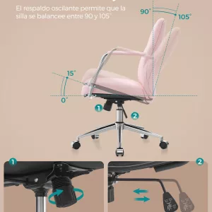 Silla de oficina giratoria y ergonómica de malla con reposapiés