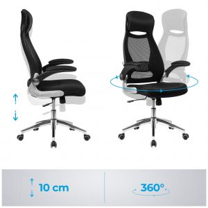 Los apoyabrazos (la altura entre los apoyabrazos y el asiento es de 22 cm) quedan muy bien con los brazos, es favorable para relajar los brazos, y los apoyabrazos plegables le facilitan colocar la silla debajo de su escritorio; gracias al mecanismo de ajuste, son regulables la altura del asiento (45-54,5 cm) y la inclinación, lo que le ayuda a relajarse (es adecuada para las personas que miden hasta 175 cm).