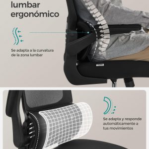 Apoyo Lumbar Adaptable: El soporte lumbar se ajusta automáticamente a tus movimientos y la curva de tu espalda, asegurando confort continuo sin importar cómo te muevas.