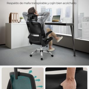 Esta silla no es solo un lugar para sentarse, es tu mejor aliado durante las largas jornadas laborales. Cuenta con un asiento súper acolchado y un tejido de poliéster transpirable que te mantendrán cómodo todo el día. Además, podrás ajustar la inclinación entre 90 y 105 grados para encontrar esa posición ideal que te permitirá relajarte completamente entre tus tareas.