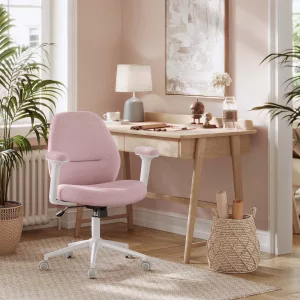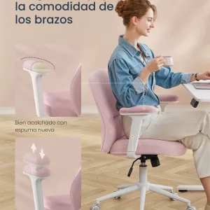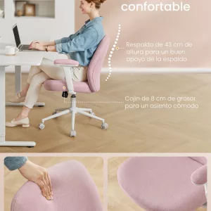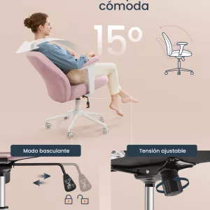 Flexible y versátil: La altura del asiento es ajustable en 8 cm, y el modo oscilante de 90-105° permite relajarte cómodamente. Las ruedas silenciosas de PU facilitan el movimiento de la silla a cualquier lugar, siendo ideal para el estudio o la sala de estar.
