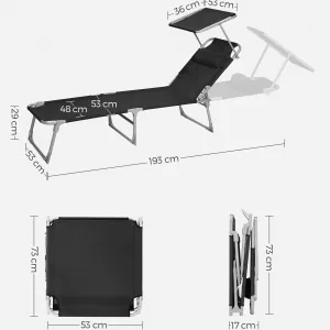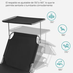 Tumbona Plegable con Respaldo Ajustable y Sombrilla Incorporada