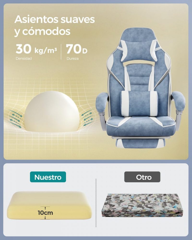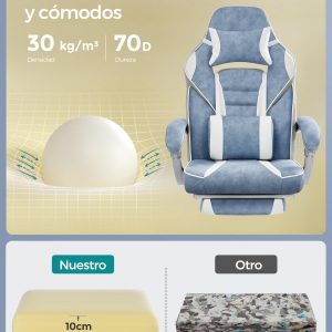 No solo es cómoda, sino también duradera y fácil de mantener. La superficie de PU resistente al desgaste se limpia con facilidad, mientras que el acolchado de espuma de alta densidad en el asiento, respaldo y reposacabezas mantiene su forma y comodidad a lo largo del tiempo. Sea para trabajar o jugar, esta silla se ajusta a tu cuerpo, ofreciendo un apoyo ininterrumpido.