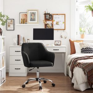 Estilo y Comodidad: El diseño curvo del respaldo y los reposabrazos no solo aporta un toque moderno a tu oficina en casa sino que también asegura una experiencia de asiento cómoda y envolvente.