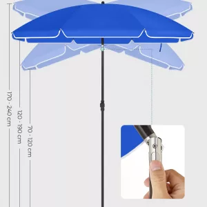 Sombra Ajustable Todo el Día: La sombrilla está equipada con una articulación de aleación de zinc resistente que permite inclinarla fácilmente, manteniendo la sombra en todo momento sin necesidad de mover el parasol constantemente.