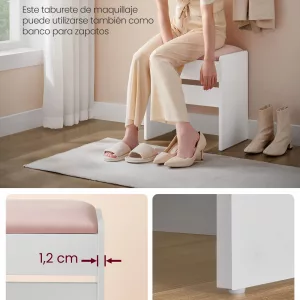 Fácil de montar: Gracias a las instrucciones claras y las piezas etiquetadas, ensamblar este taburete de tocador es rápido y sencillo, permitiéndote disfrutar de su funcionalidad sin complicaciones.