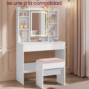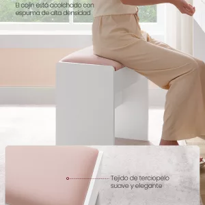 Cómodo asiento: El cojín de 5 cm de grosor, envuelto en tela de terciopelo y relleno de espuma de alta densidad, ofrece una experiencia de asiento acogedora y confortable, ideal para maquillarte, peinarte o cuidar de tu piel.
