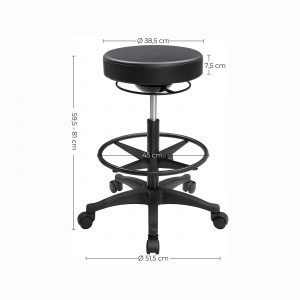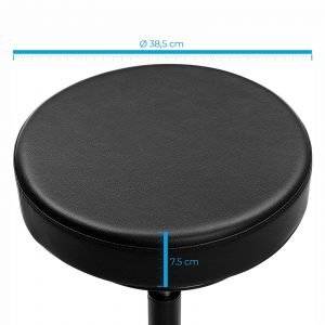 Confort Superior: Disfruta de un asiento acolchado de 38,5 cm de diámetro y 7,5 cm de espesor, relleno de espuma de alta densidad y cubierto con suave cuero sintético, garantizando comodidad durante todo el día.