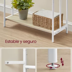 Alta Estabilidad: Equipado con cuatro pies ajustables que garantizan una base estable incluso en suelos irregulares, y barras laterales que refuerzan la estructura, asegurando una mayor estabilidad y durabilidad.