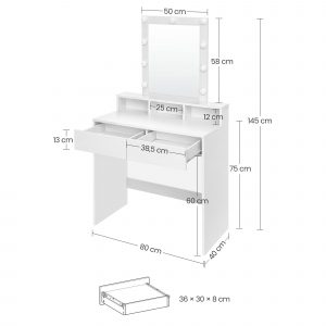 Fabricada con tableros de aglomerado de calidad, este tocador es resistente y duradero. Su superficie es resistente al desgaste y fácil de limpiar, para que puedas disfrutar de un uso duradero.