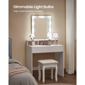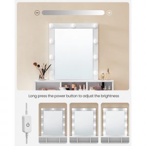 Este tocador está equipado con 9 luces con brillo ajustable. Pulsando prolongadamente el interruptor, puedes ajustar libremente el brillo para encontrar la luz adecuada para un maquillaje perfecto.