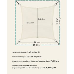Toldo exterior terraza 3×3 m, protección uv, beige