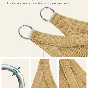 Material: Tejido HDPE (Polietileno de Alta Densidad) de 180 g/m², Anillo de Acero Inoxidable