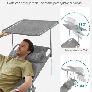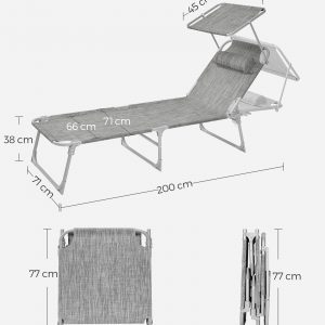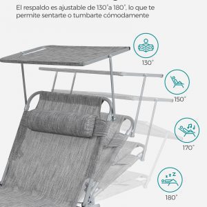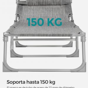 Tumbona plegable 71x200x38 cm respaldo ajustable greige