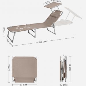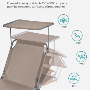 Tumbona Plegable con Respaldo Ajustable y Sombrilla Incorporada