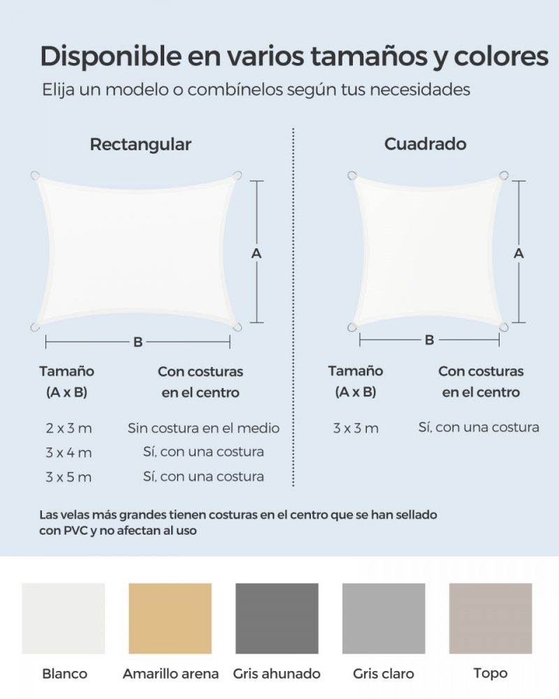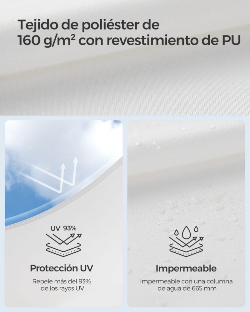 Material: Tejido de Poliéster de 160 g/m² con Revestimiento de PU, Anillo de Acero Inoxidable