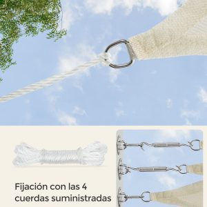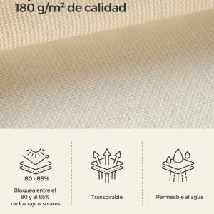 Material: Tejido HDPE (Polietileno de Alta Densidad) de 180 g/m², Anillo de Acero Inoxidable