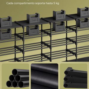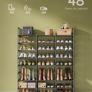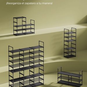 Este versátil organizador de zapatos no solo ofrece un amplio espacio para hasta 48 pares de zapatos, sino que también se adapta a tus necesidades específicas de almacenamiento. Ya sea en un armario, garaje o trastero, este zapatero es la solución perfecta para mantener todo en orden.