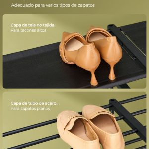 2 Tipos de Estantes de Almacenaje: Este zapatero cuenta con capas de tela no tejida para tacones altos y bolsos, y capas de tubos de acero para zapatos planos y cajas. Cada artículo encontrará su lugar en este estante versátil, manteniendo todo organizado y accesible.