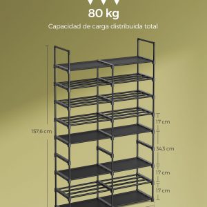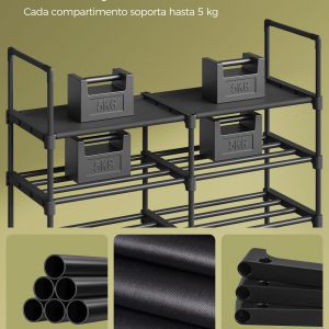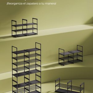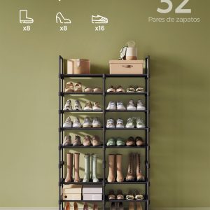 Este versátil organizador de zapatos no solo ofrece un amplio espacio para hasta 32 pares de zapatos, sino que también se adapta a tus necesidades específicas de almacenamiento. Ya sea en un armario, garaje o trastero, este zapatero es la solución perfecta para mantener todo en orden.