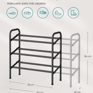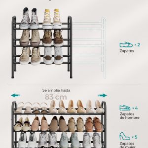 Este zapatero extensible es la solución ideal para mantener tus zapatos organizados y accesibles. Con su capacidad de expandirse de 58 cm a 83 cm, se adapta perfectamente a diferentes espacios y necesidades, desde el garaje y la entrada hasta el dormitorio. Su diseño único y las características prácticas lo hacen ideal para hogares con espacio limitado o para aquellos que buscan una organización de zapatos más eficiente.