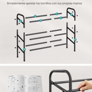 Montaje Fácil y Rápido: Con tornillos que no requieren herramientas y pueden apretarse manualmente, el montaje de este zapatero es un proceso sencillo y sin complicaciones.