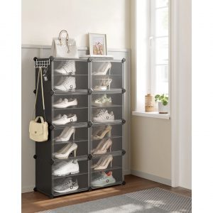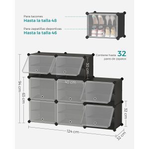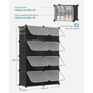 Este zapatero modular ofrece una solución espaciosa y versátil para mantener tus zapatos, bolsos y ropa ordenados. Con capacidad para hasta 32 pares de zapatos, este práctico mueble te permite aprovechar al máximo el espacio disponible.